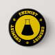 Perno amarillo del botón del negro y de la precaución con las letras del estilo y el frasco de Erlenmeyer colegiales.