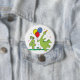 El cuarto cumpleaños es un lindo dinosaurio de brontosaurio verde con gorras y globos fiestas, volcán en el fondo, con un texto que dice "Tengo 64 años en verde.