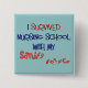 Botón divertido del estudiante de la enfermería, "sobreviví la escuela de enfermería con mi cordura intacta".