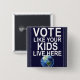 Un juego en la "impulsión ubicua como sus niños vive aquí" las muestras de la yarda, un diseño para los que crean que eso el cambio de clima de lucha es uno de los temas importantes en la elección próxima.