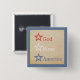 Simple Moda Estrellas botón 4 de julio con un fondo de papel falso texturizado y un trío de estrellas rojas, blancas y azules. Este elegante botón es una buena manera de mostrar tu lado patriótico. El producto muestra la frase "Dios bendiga a Estados Unidos" pero en su lugar puede ser personalizado con su propio texto.