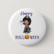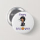 botón Feliz Halloween Chica botón de princesa espeluznante botón de princesa espeluznante. Este botón brillante y colorido presenta a una princesa linda como quedarse en una calabaza con una lámpara fantasma en la mano. Puede cambiar fácilmente el tamaño y la forma del botón en el menú de personalización.