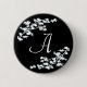El deco floral blanco en negro hace elegante y fino este botón del monograma para personalizar la letra inicial del nombre cambiante también que usted prefiere. Regalo muy bonito para cualquier ocasión