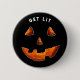 Halloween, botón de la temporada o favores de la fiesta con una calabaza con una linterna y las palabras: Get Lit.