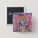 Un botón con mi pintura cuadrada de acuarela de 18" de Ganesh. Ganesh es un dios hindú. Es el removedor de obstáculos, patrocinador de las artes y las ciencias, señor del intelecto y la sabiduría, dios de los comienzos, y patrocinador de las letras y el aprendizaje. Sostiene su propio colmillo roto en su mano inferior derecha y sostiene una exquisitez, en su mano inferior izquierda. En una parte superior del brazo sostiene un hacha, y en la otra parte superior del brazo, una soga. Lo he colocado sentado frente a una flor rosada de loto, como parte de un símbolo de nuevos comienzos que se están desarrollando.