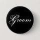Este botón de retroceso presenta un elegante diseño de texto blanco en un fondo negro: Groom - perfecto para los hombres comprometidos!