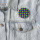 Este botón presenta una serie de cerdos de diferentes colores de estilo personalizado. Los cerdos se alternan entre el verde y el amarillo y el púrpura y el azul. El fondo es negro.