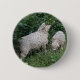 Este impresionante Button muestra una fotografía de un par de lindas ovejas esponjosas. Las ovejas están rodeadas de flores silvestres y de hierba larga y están paradas debajo de un árbol y se están acercando, comiendo codicia algunas hojas. Tienen gruesos abrigos blancos de lana y caras muy lindas.