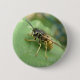 Este bello botón presenta una fotografía de primer plano, increíblemente detallada, de una hermosa mosca franja negra y amarilla que descansa sobre una hoja. La fotografía fue tomada usando macrofotografía para un resultado fantástico y detallado.