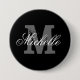 Botones de boda monograma nombre personalizado | Clásico blanco y negro. Elegante diseño para novias, novias, sirvientas de honor, chicas de flores, invitados, familia en la soltera de moda / ducha de novia, fiesta de bodas. Letra inicial monogramada con texto elegante de tipografía. Cambiar la cantidad para obtener el precio al por mayor. Haz tus propias insignias de nombre personalizadas.