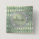 Un elegante patrón de arlequín de diamante de color verde menta sobre un fondo verde oscuro con una esfera verde en el medio con un borde purpurinoso de plata glam donde se puede personalizar con una letra, nombre, logo o frase. Moda Glam vibra.