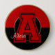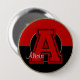 Botón Monogramado de Colores Escolares, Rojo y Negro, Letra A- Un gran botón redondo con respaldo de cuatro pulgadas con una letra monograma cosida en el centro. El fondo de este botón se crea en dos colores escolares (rojo y negro) con un corte de orificio central que expone un fondo negro debajo. El marco redondeado se recorta en el centro y en los bordes exteriores con una bonita llanta dorada. En el centro hay una gran letra alfabética recortada en puntos negros. Ya hay un área de texto para que puedas personalizar como quieras. Puede escribir un nombre, apellido, nombre escolar o cualquier otra cosa que desee. También puede optar por eliminar el área de texto si lo prefiere. Personalice este botón de colores de escuela para adaptarlo.