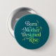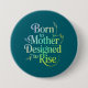 Botón redondo inspirador con la frase "Nacido para madre, diseñado para ascender" en gradiente pastel suave sobre verde azulado. Un accesorio significativo para las mamás o un regalo meditado.