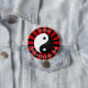 Botón de nombre de evento o fiesta de cumpleaños de karate rojo y negro personalizado con el nombre del niño y del evento.