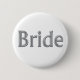 Un elegante pin de fiesta de novias con un falso diseño de texto plateado que dice Novia.