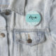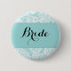 - Botón del fiesta de Bachelorette de la "novia" con la frontera azul del fondo y del acento del cordón.