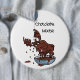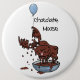Un botón humorístico o una insignia, con un alce alegre y cómico disfrutando del chocolate que se derrite. El globo atado a una de sus cuerdas se agrega a la diversión. (Este diseño se ajustará a todos los tamaños de botón.)