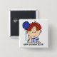 ¡Un pequeño muchacho pelirrojo con un globo azul y una camisa azul en un botón que usted puede modificar para requisitos particulares con su opción del texto, su nombre, y edad! ¡Perfeccione para todos que estén asistiendo a la fiesta de cumpleaños!