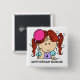 ¡Un pequeño chica pelirrojo con un globo y una camisa rosados del azul y de la lavanda en un botón que usted puede modificar para requisitos particulares con su opción del texto, su nombre, y edad! ¡Perfeccione para todos que estén asistiendo a la fiesta de cumpleaños!