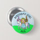 Un bonito botón de cumpleaños de una princesa de cuento de hadas caprichosa dibujada a mano con cabello RUBIO y un unicornio. Simplemente agregue el nombre del niño en el área de personalización.