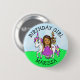 Un bonito botón de cumpleaños de una princesa de cuento de hadas caprichosa dibujada a mano con cabello negro. Simplemente agregue el nombre del niño en el área de personalización. Esta pequeña princesa podría representar a una persona afroamericana, hispana o biracial.