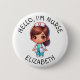 Hola Im Enfermera (Añadir Nombre) Botón Personalizado. Enfermera de pelo castaño rojizo.
