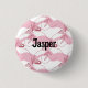 Patrón minimalista en tonos violeta, rosa y blanco, diseño con hojas, doodles y olas. Botón personalizado.