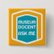 Dimensiones del botón de Docente Pregúntame Museo: 2"l x 2"w. Cubierta con arañazos y Mylar resistente a los rayos UV. Botones redondos disponibles también. Fabricada en EE. UU.