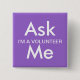 Botón Pregúntame por negocios, escuela, voluntarios. Cambie el color de fondo y añada texto adicional o el logotipo de su empresa si desea personalizar estos pines "pregúntame" con información adicional. Diseño de Elke Clarke ©2011