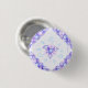 Un diseño bonito del botón con una flor púrpura suave-sombreada con las hojas y twirly las vides del azul.