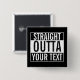 Insignia RECTA personalizada del botón de OUTTA con nuestra plantilla. Haga su propio diseño RECTO de encargo de OUTTA. Diseño divertido de la parodia con las letras grandes. Añada su propia ciudad, parodíela o cite a esta plantilla. Idea blanco y negro linda del regalo del meme del Internet para los hombres, las mujeres y los niños adolescentes. Guay personalizó ejemplos: Cama recta del outta. Dinero recto del outta. Ideas rectas del outta. Café recto del outta. Prisión recta del outta. Outta recto el gimnasio. Nombres de la ciudad y de país; Compton, Londres, París, Colombia, el Brasil, Chicago, Nueva York, LA, Boston, Brooklyn, Europa.
