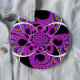 Un diseño abstracto principalmente en morado, negro y blanco cubre el frente de esta hermosa