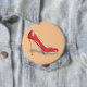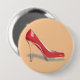 Un botón redondo rosado oscuro elegante, con un zapato rojo del tacón alto. Grande usarse en una noche de los chicas, en un fiesta de gallina, en el orgullo gay… o para el uso diario como accesorio de moda. Para cada uno que tiene gusto de la cultura popular y del diseño contemporáneo. Compruebe hacia fuera nuestra colección de botones de los zapatos del tacón alto en azul, amarillo y verde. Disponible en todos los tamaños y formas.