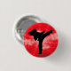 Mujer de los artes marciales en un botón tempestuoso rojo del pinback del fondo.