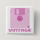 Este divertido, botón temático del ordenador ofrece una escuela vieja del disco blando y el vintage de la palabra debajo. Una imagen nostálgica para los frikis, las tecnologías, y cualquier persona que utiliza los ordenadores.