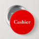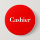 Este botón de la parte posterior del perno tiene un fondo rojo con la palabra "cajero". Perfeccione para el uso del negocio o para la venta de garaje, los mercadillos caseros, o las recaudadores de fondos. Este botón se puede personalizar con un nombre también.