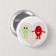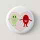 Un botón con un lindo personalizado de una sonriente uva roja sosteniendo las manos con una sonriente uva verde con un corazón rosa bonito en el fondo, ambas uvas tienen brillantes ojos negros y bocas rosas.