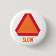 Fotografía de la señal del vehículo en movimiento lento con la palabra "lento" impresa a continuación.