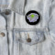 Este botón de bonito muestra una fotografía de una flor de petunia que ha sido manipulada para hacer que el centro de la flor brille en verde brillante. Los pétalos exteriores son blancos y las venas que salen del centro de la flor también brillan verde. La flor está sobre un fondo negro para que destaque.
