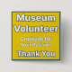 Dimensiones del botón del voluntario del museo: 2"l x 2"w. Cubierta con arañazos y Mylar resistente a los rayos UV. Botones redondos disponibles también. Fabricada en EE. UU.