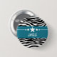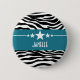 Moderno y moderno botón Sassy Star Zebra con fondo de moda de cebra en blanco y negro y un atrevido borde azul real adornado con un divertido motivo estrella. Este diseño ondulado puede ser personalizado con el texto personalizado de su elección. Haga clic en "Personalizar" para encontrar más opciones de personalización.