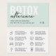 Esta plantilla editable es perfecta para pequeñas y medianas empresas,Si necesita ayuda de diseño, póngase en contacto con nosotros. Respondemos rápidamente. Tarjeta de presentación de Instrucciones de Botox de Aftercare Moderno.