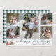 Comparte saludos de vacaciones con estas rústicas tarjetas de fotos navideñas de moda con cinco fotos favoritas en un diseño de collage (4 cuadrados y un retrato/vertical). "Felices Fiestas" aparece en la parte inferior de la tipografía con letras a mano, acentuada con conos de pino, bayas y flores rojas de vacaciones en una masa pintada. Personalice su nombre y el año que aparece en la parte inferior. Las tarjetas cambian a un rústico patrón de manchas de búfalo al hacer coincidir las vacaciones en rojo y blanco.