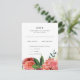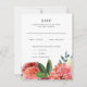 Este diseño boda presenta una hermosa dahlia con un bonito fondo de color acuático y una tipografía de inspiración vintage. Juntos, estos elementos crean una carta rústica y elegante de respuesta nupcial que sería perfecta para un boda romántico en cualquier época del año. Ver a continuación para más piezas de esta suite de invitados a la boda...