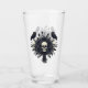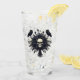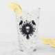 Un ramo gótico en negro, con un cráneo blanco en el centro, y dos lechuzas negras en la parte superior hacen un hermoso vaso para beber. Diseño inusual, llamativo, perfecto para Halloween . . . o cualquier otro día.