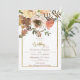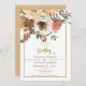 La caída es un momento hermoso para un boda, y los colores de esta invitación lo muestran. Tonos de tierra suave de óxido, marrón, tostado y crema con follaje verde tierra y un borde dorado falso. Esta invitación, que forma parte de la suite de cartas Fall Floral Bouquet Wedding Invitation creada por Simply Farmhouse Press, también está disponible con el dorado salpicado para una apariencia más elegante.