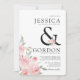Un conjunto único de invitaciones floridas con temática floral, subió específicamente para su futuro boda. Tienen un símbolo "&" en negrita que une los nombres de la novia y el novio.