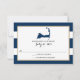 Tarjeta RSVP de boda para tu boda de Cape Cod. Mapa de Cape Cod Massachusetts con un corazón de champagne Gold sobre Bourne, Massachusetts. COLORES en Champagne Gold, azul marino y blanco. Para obtener información sobre cambios de diseño personalizados por parte del diseñador independiente, envíe un correo electrónico a paula@labellarue.com ANTES de que el personalizar realice un pedido.