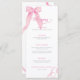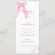Buscando un menú 4x9 rosado para tu niñita que está atando el nudo de la ducha de novia? Estos menús imprimibles de color rosa son fácilmente personalizables y perfectos para las mesas. Este menú editable de color rosa es de 4 x 9 pulgadas de tamaño. El diseño del menú AMORETTE rosado presenta un diseño sencillo y clásico con fondo blanco y una proa acuarela rosa con cintas, emparejada con un tipo de letra manuscrita y elegantes tipos de letra serif en tonos rosas y grises. Esta plantilla de menú con un menú de la proa rosa combina a la perfección con una ducha de novia con un tema de la proa rosa femenina.