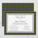 Invitación a una boda de personalizable con temática Boda escocesa usando uno de los tartanes para el nombre de la familia Bowie. La información de la invitación a la boda de personalizable se enmarca en el centro de una invitación rectangular estilizada. Es perfecto para bodas de destino, bodas del patrimonio familiar o bodas de temática escocesa. Si quieres que otro escote no aparezca aquí, por favor siéntete libre de enviarme un mensaje. Proporcione el número de referencia de STA para el patrón tartán que desee, de ser posible.
